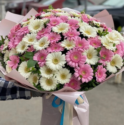 Букет из 101 белой и розовой герберой | Купить в Сургуте